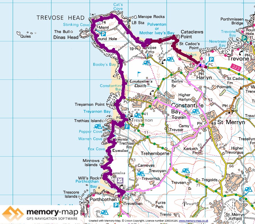 The morning was misty and so we made a rather slow start before walking down the hill from the campsite to Porthcothan. Then rejoined the coastal path after crossing the bridge.