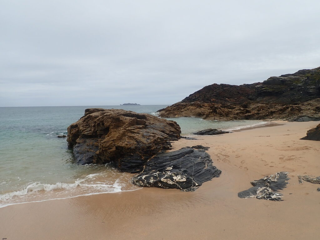 A fairly easy slow acescent and a flat section before descending to Trevose beach where we found a rather good café, the Melt, on the way down to the beach. The path then crosses the sandy beach before crossing a rocky outcrop and descending to Constantine beach.